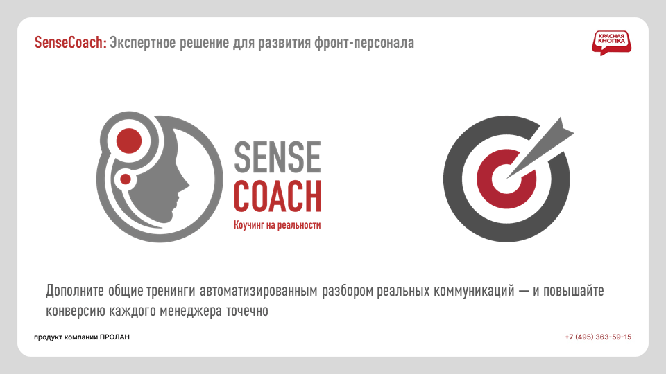 SenseCoach — это решение для точечного коучинга фронт-персонала на основе разбора реальных рабочих ситуаций. Платформа автоматизирует самый трудоемкий процесс: тренер выбирает в системе показательные записи, а SenseCoach отправляет их сотрудникам вместе с адаптивным опросом для самооценки.