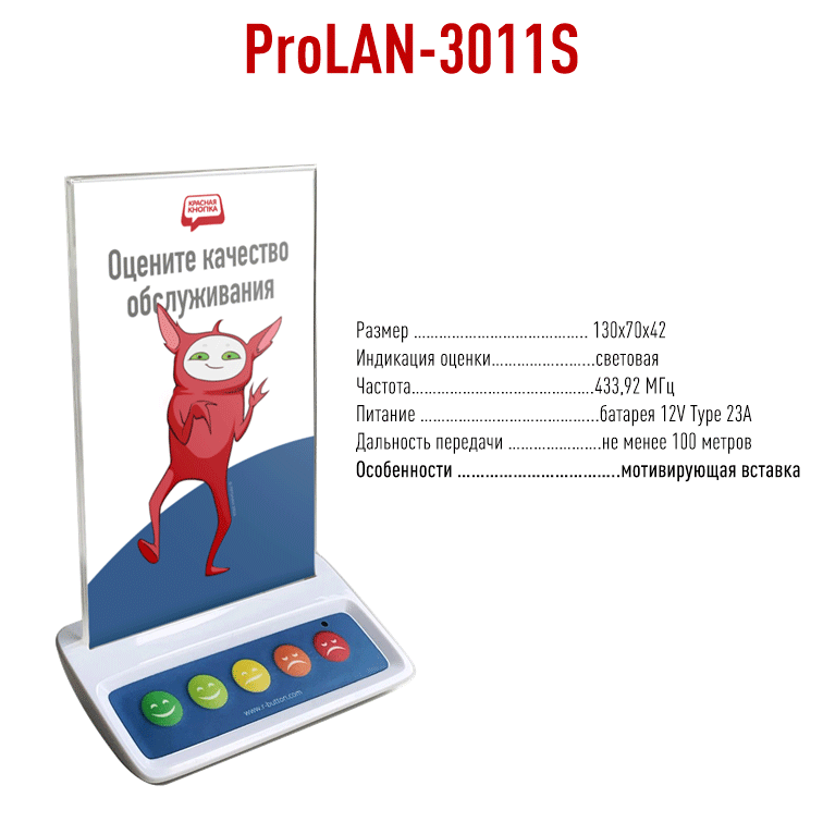 Приобретая пульт ProLAN-3011-c, который кроме 3-х смайликов содержит 2-е кнопки вызова, или, приобретая дополнительно кнопку вызова ProLAN-150 (или аналог), вы получите два решения в одном: Кнопку Лояльности + TrioCall (Telegram-кнопка Вызова).